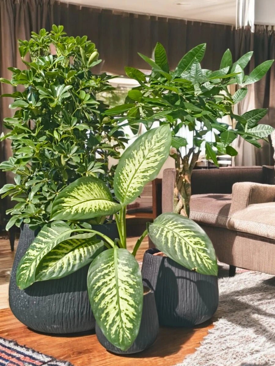 Dubai Luxe Greens Bundle | Saplera, Pachira and Dieffenbachia | Fiber Pots Set