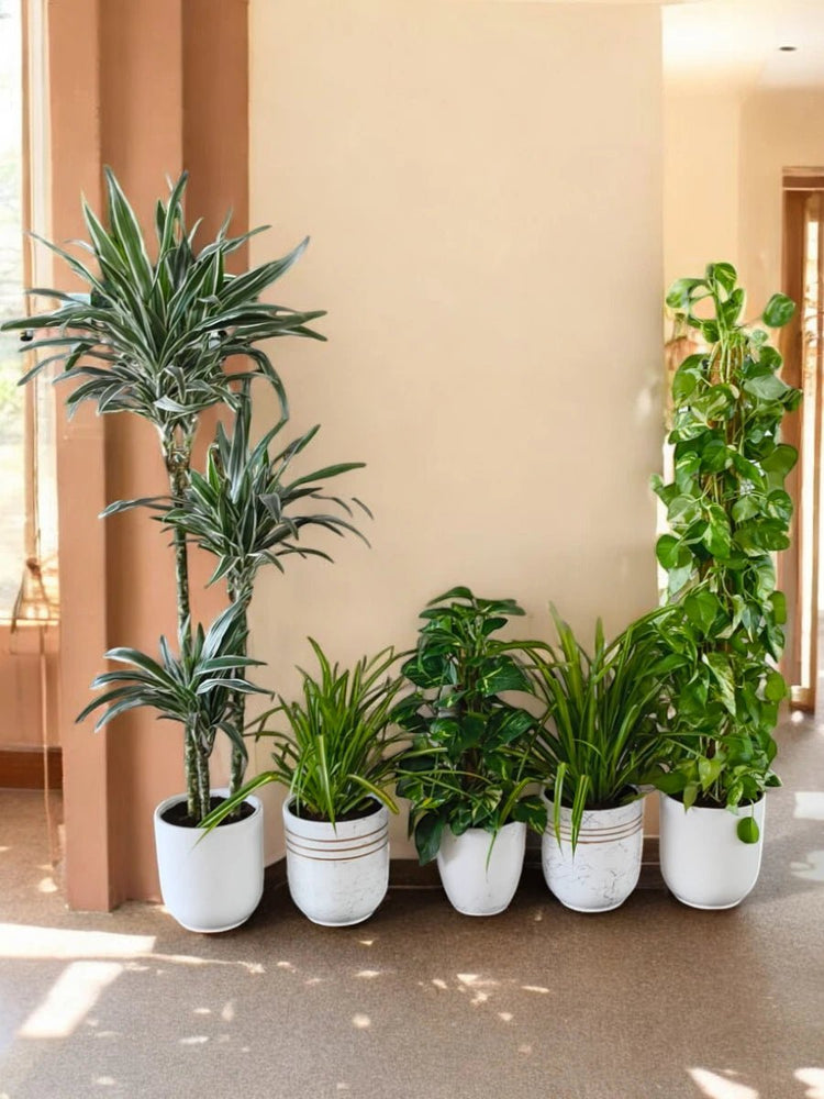 Enhance your home or office with the Nature Touch Bundle, featuring five carefully curated plants: Money Plant (Tall), Dracaena (Tall), Money Plant Variegated (Small), and 2 Pandanus (Small). This set brings a perfect mix of height, texture, and greenery to create a calming and vibrant indoor environment.